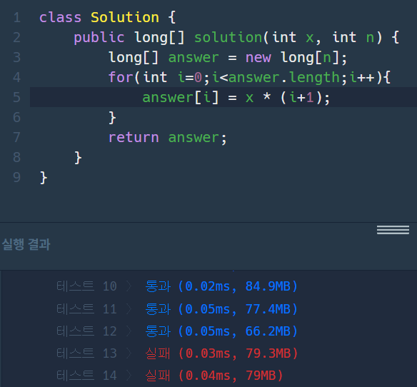 x부터 시작해 x씩 증가하는 숫자를 n개 지니는 리스트를 리턴해야 합니다.
