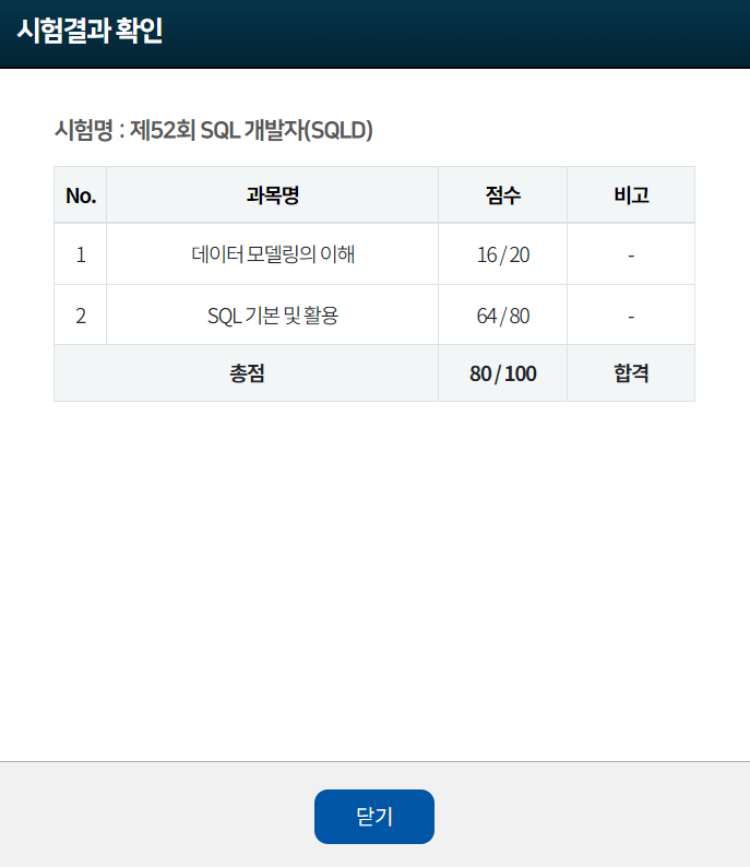 SQLD 합격 후기입니다.