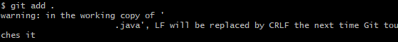 번역) 경고 : xxx.java에서 LF는CRLF로 대체됩니다. 파일의 줄 끝 문자가 LF(Line Feed)에서 CRLF(Carriage Return Line Feed)로 변경될 것이라는 것을 의미.